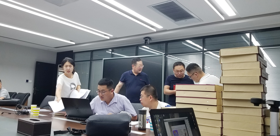 (图为公司资产管理经营部人员、正衡公司人员对划拨地使用权作价处置工作进行资料审核)