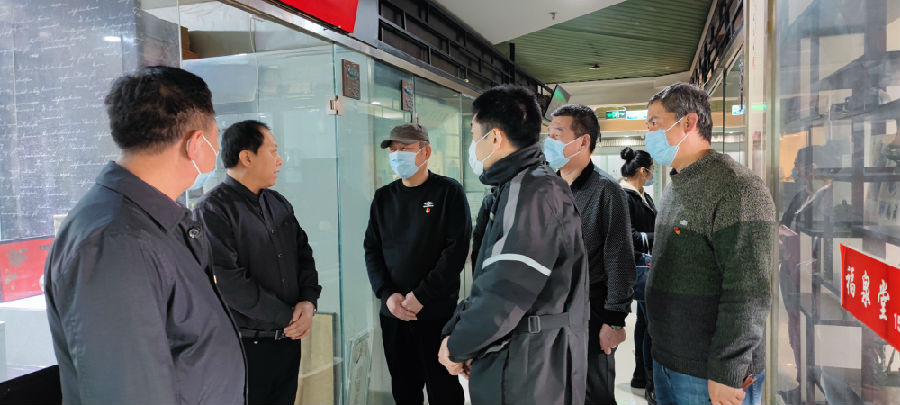 3月29日上午,山东出版实业公司党委委员、副总经理夏国文、公司党委委员、纪委书记梁栋根据公司疫情防控工作领导小组工作安排,来到东图大厦齐鲁古玩城突击检查疫情防控工作的落实情况。